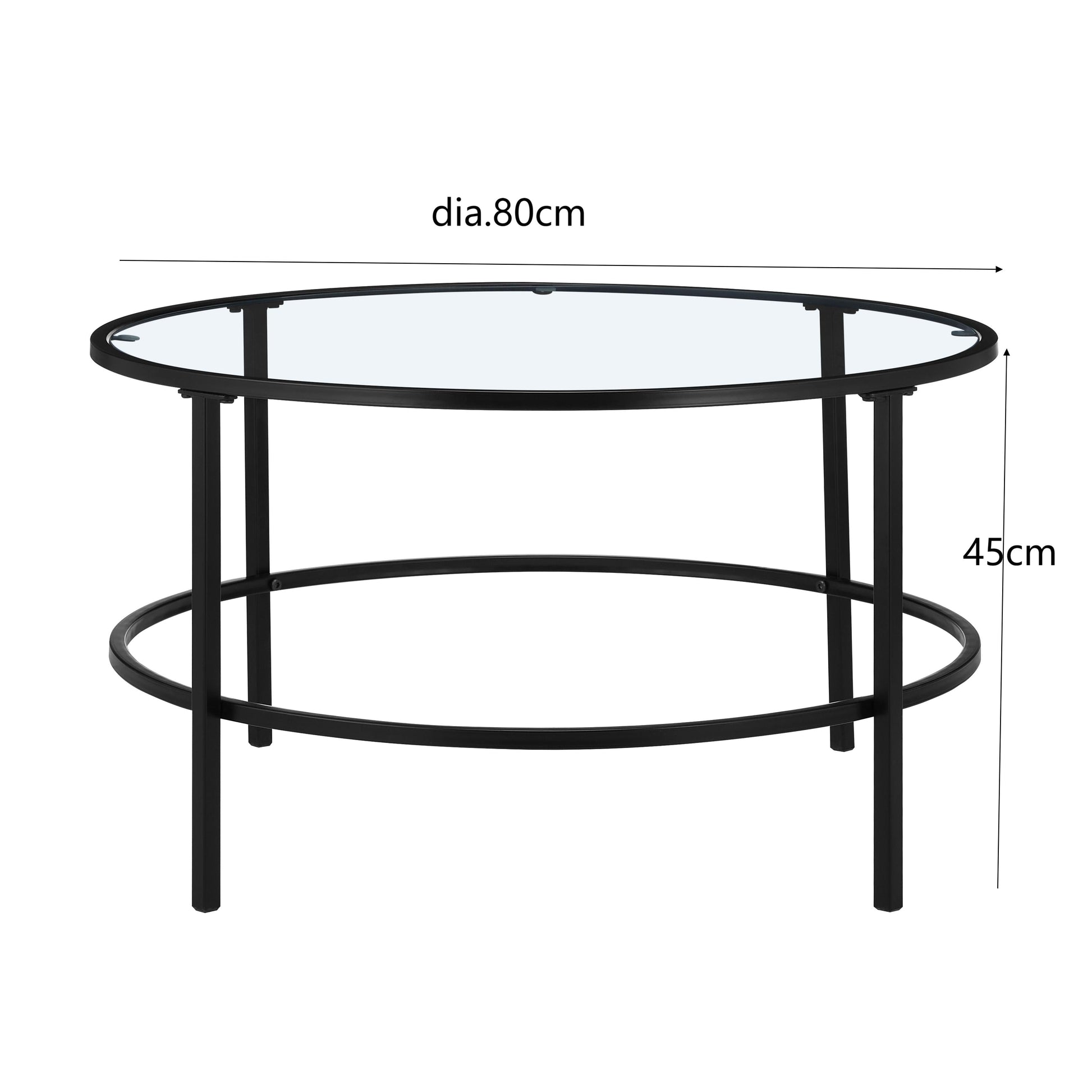 Elevate your living space with this stylish circular table, available in black or gold with a tempered glass top. The sleek metal frame adds a touch of modern elegance, while the circular design serves as a versatile and functional centerpiece for any room. Use this table in front of your sofa to easily access drinks, books, or decorative accents. With its sturdy metal construction and transparent glass top, this table seamlessly blends into any decor style. Whether in your living room, den, or home office, this timeless and practical piece is a chic addition. Assembly is simple with the included tools and instructions, as this product arrives flat packed.