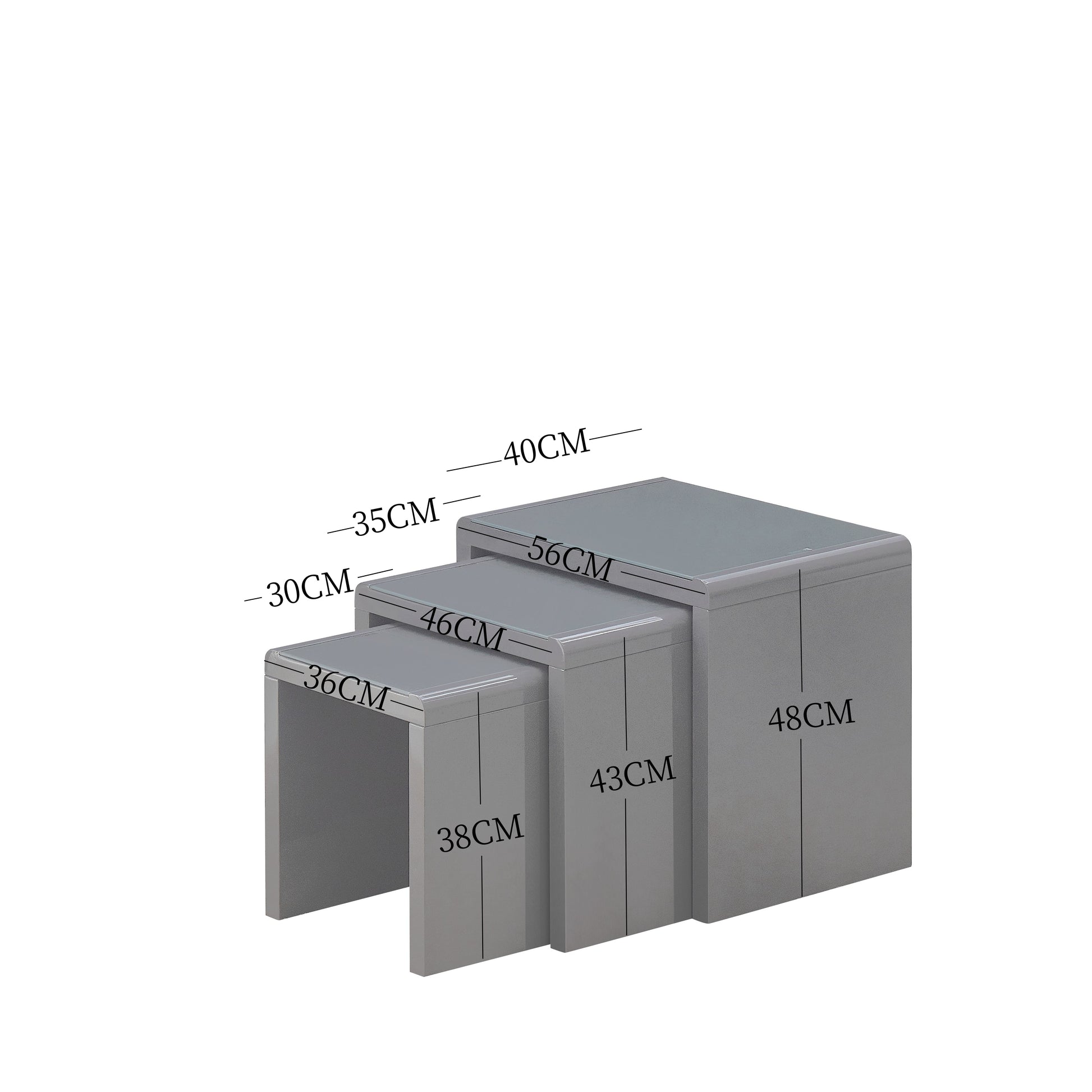 Experience modern elegance at its finest with these High Gloss Nest of Tables, available in either white or grey. Crafted with sleek and contemporary designs, these tables seamlessly blend into any living space, adding a touch of sophistication. The glass tabletops provide a smooth and reflective surface, perfect for displaying decorative pieces or serving refreshments. With a sturdy frame in a chic grey or white hue, these tables offer a solid foundation and can easily be nested together to save valuable floor space. Versatile in style and space-saving in design, these nesting tables are the perfect addition to any home decor.