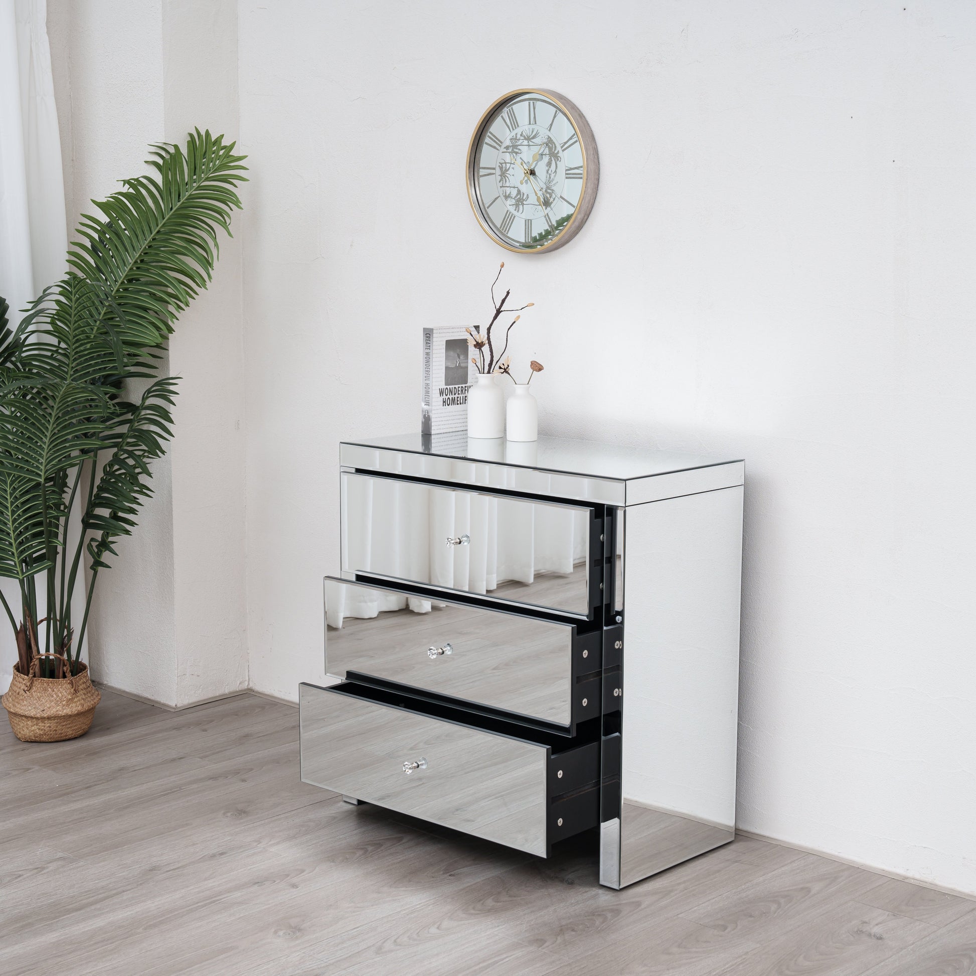 Mirrored 3 Drawer Chest Crystal Handles Bedroom Furniture