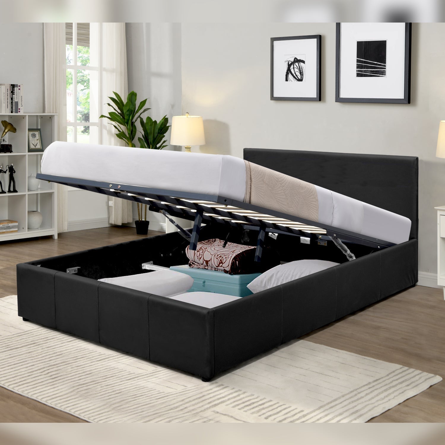 Elevate your bedroom storage with the Prado Faux Leather Ottoman Bed Frame. Available in 2 colours and 3 sizes, this bed features a hydraulic gas lift system that easily raises the mattress for convenient access to the spacious storage area. Its sturdy beech slatted base and centre rail offer reliable support for a well-constructed and practical addition to your bedroom.