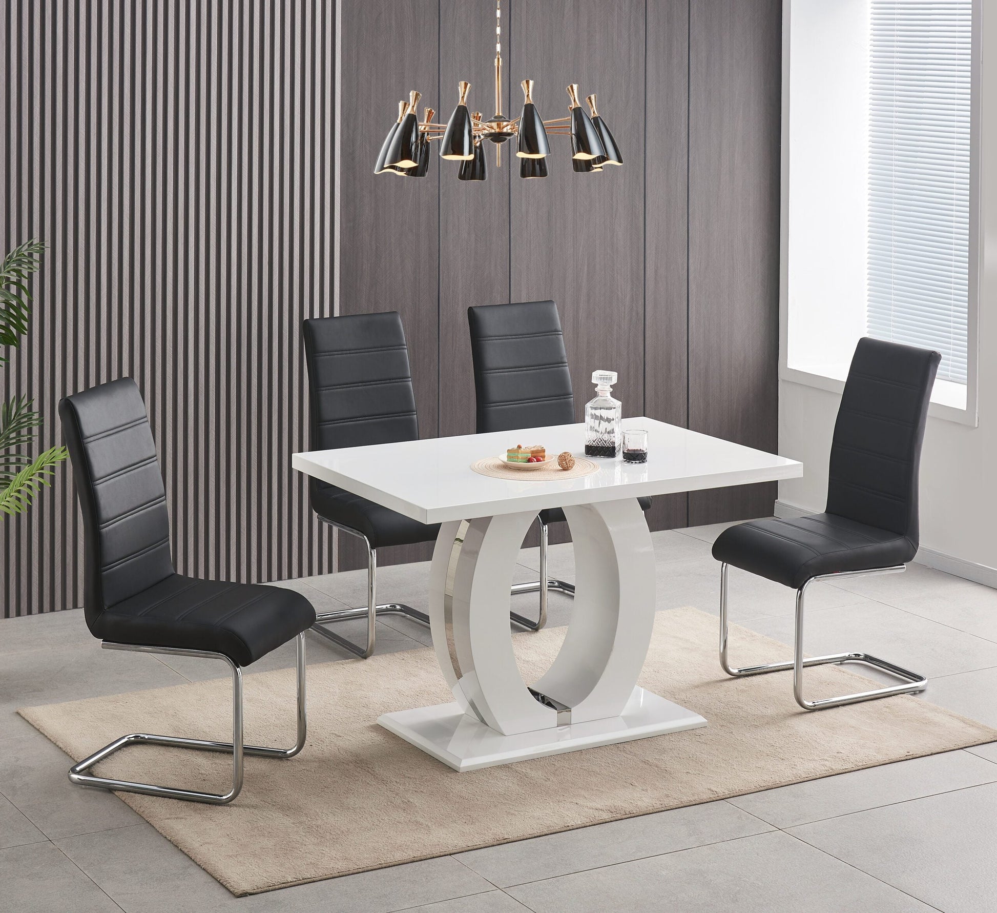 Expertly crafted with a stylish white high gloss finish, the Rimini Dining Set offers both form and function. Choose between a 5 or 7 piece set, perfect for any dining room. Enjoy an elegant and modern touch to your dining experience.