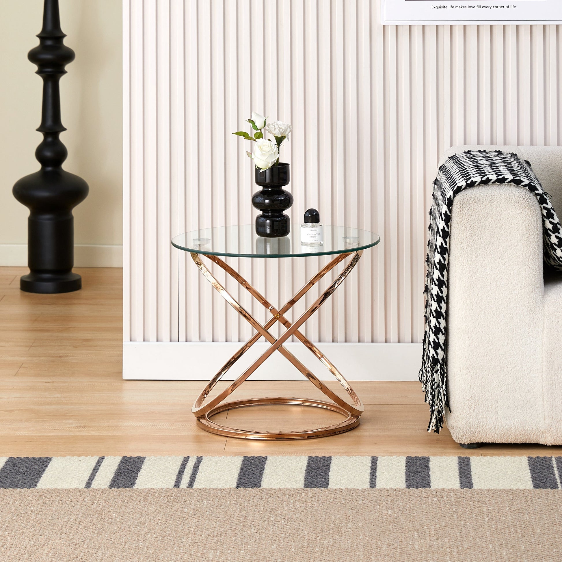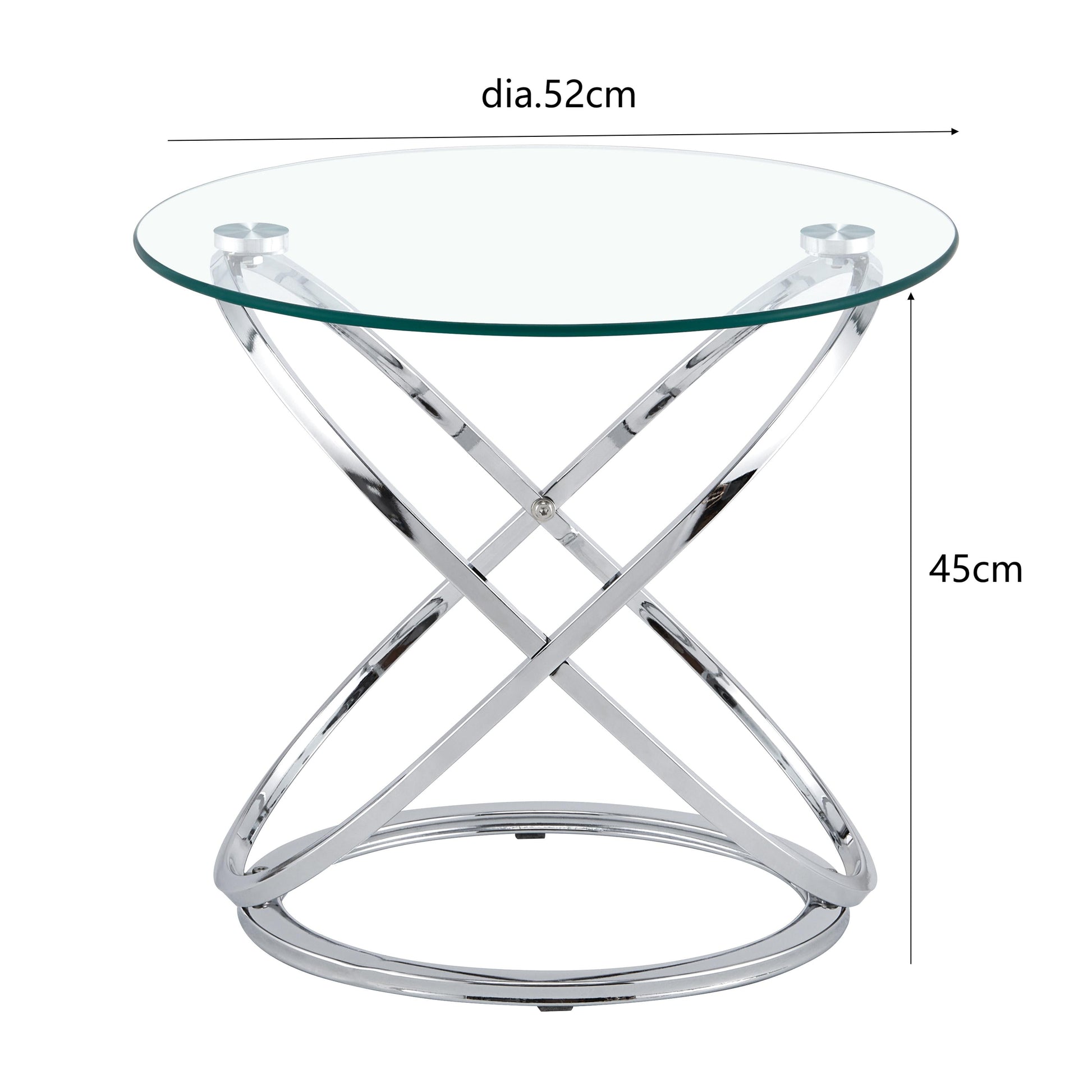Round Tempered Glass Lamp Side Table, Chrome Effect, Gold or Silver Living Room